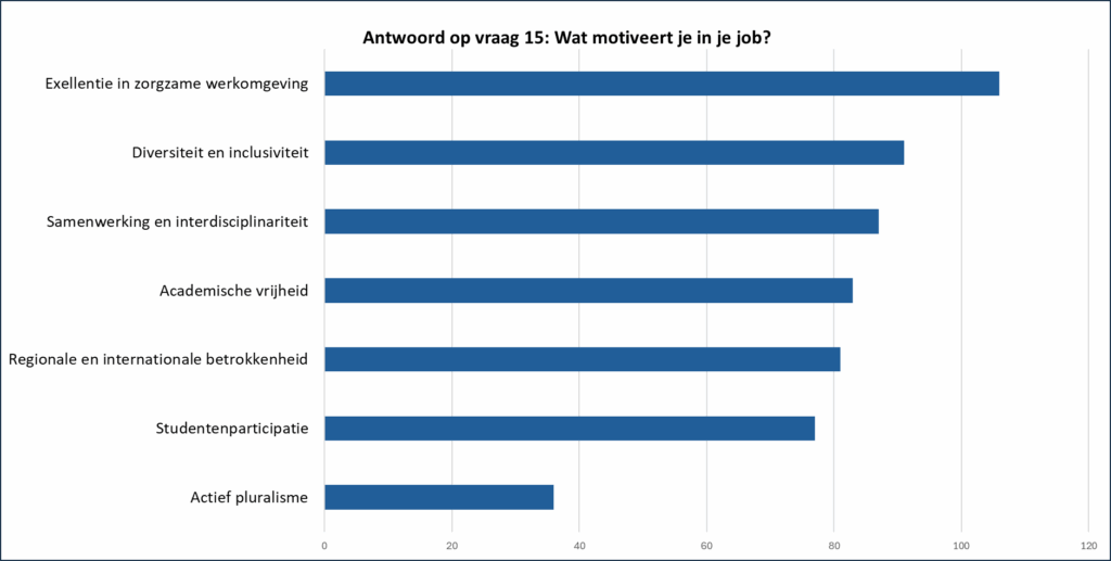2. In de laatste vraag gaven de deelnemers aan welke drie krachtlijnen hen het meest motiveren in hun job.