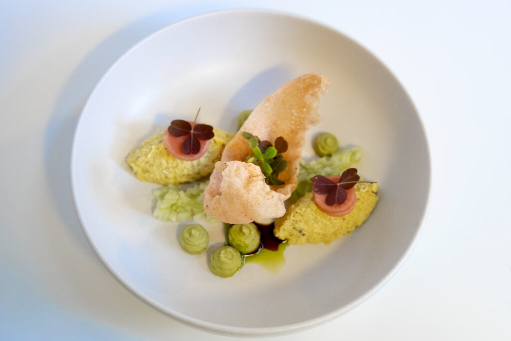 Duurzaamheid staat centraal in alles wat de keuken onderneemt. Er wordt dagelijks en in kleine hoeveelheden ingekocht om voedselverspilling te beperken. Op de kaart vind je lokale en seizoensgebonden ingrediënten, vegetarische opties en plantbased alternatieven op aanvraag. Zelfs in kleine dingen staat duurzaamheid voorop. “We vermijden individueel verpakte producten en kiezen bewust voor herbruikbare alternatieven,” vult Nele aan.